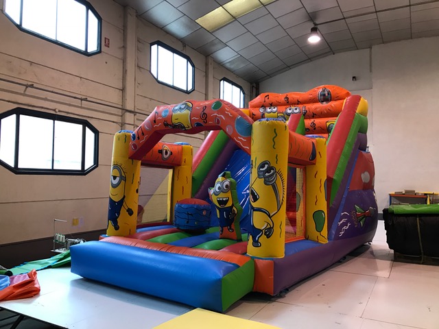 Queridos amigos. Hoy queremos mostraros otro modelo de hinchable. Se trata del Tobogán Pequeño, cuyas medidas son: 7 x 4,6 x 4,5 m. Este hinchable tiene varios obstáculos para saltar, además del tobogán; luego la diversión para los niños está garantizada.Ya sabéis que nuestros hinchables se fabrican con lona ignífuga 100% de 650 gr/m. Se cosen con doble pasada de doble puntada de hilo de alta resistencia al agua y a los rayos UV. Vienen reforzados entre camas con cinta de poliéster hidrófuga. Incluyen cremalleras y asas entre las camas para facilitar un mejor plegado. También tienen anillas para protegerlos del viento. Os garantizamos que cumplen la normativa de seguridad europea UNE-EN 14960-2014. La decoración y pintura se realiza a mano y al gusto de cada cliente.